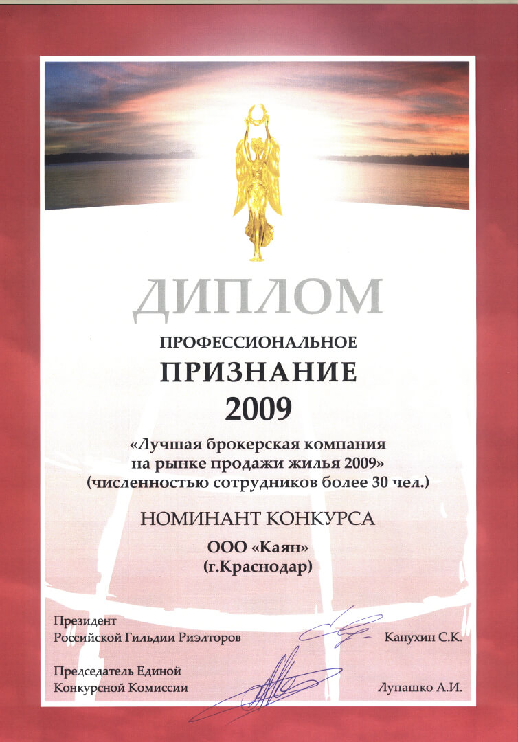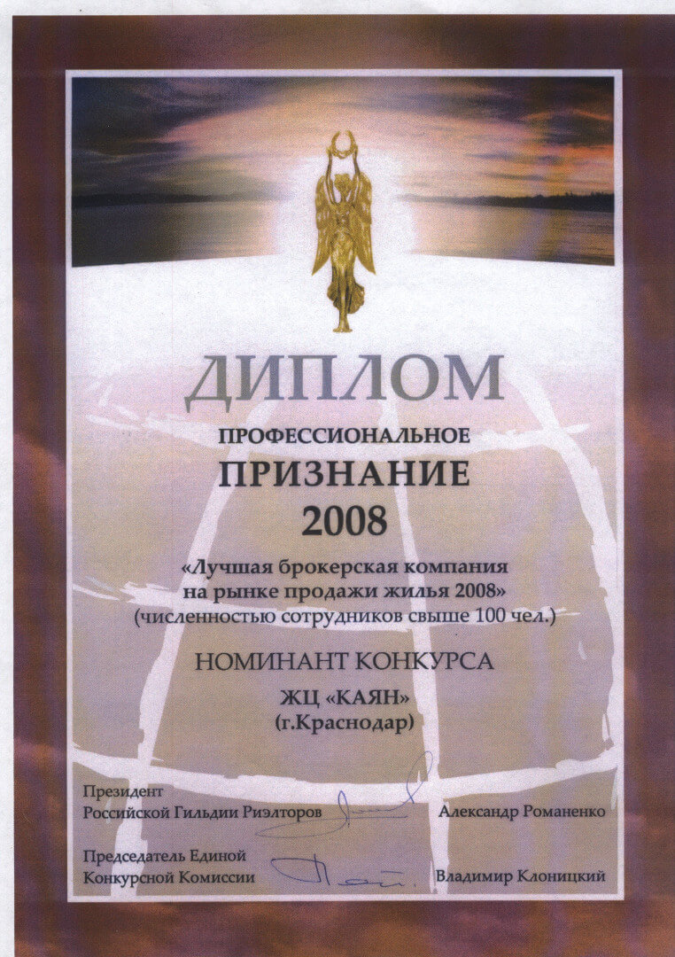 Жилищно-Ипотечный Центр "КАЯН" — самая титулованная риэлторская фирма Краснодара и края. Мы удостоены наибольшего количества престижных дипломов и наград агентства недвижимости Краснодара от авторитетных независимых экспертов.