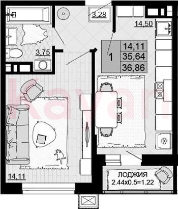 Продажа 1-комн. квартиры, 36.86 кв.м