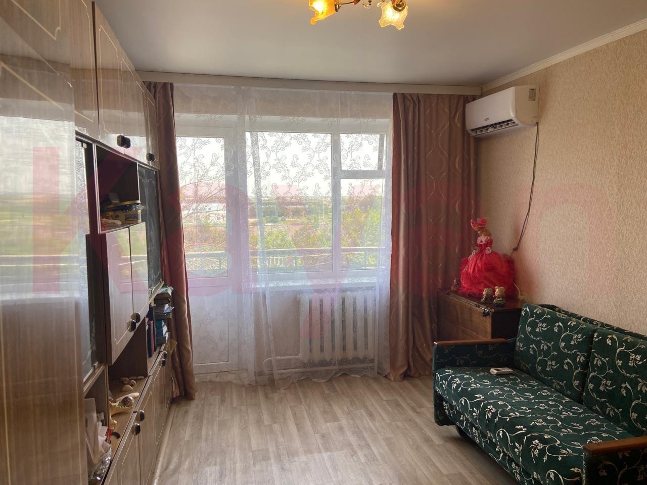 Окна квартиры выходят во двор, сторона не солнечная. Установлена сплит-система. Выход на балкон из комнаты.