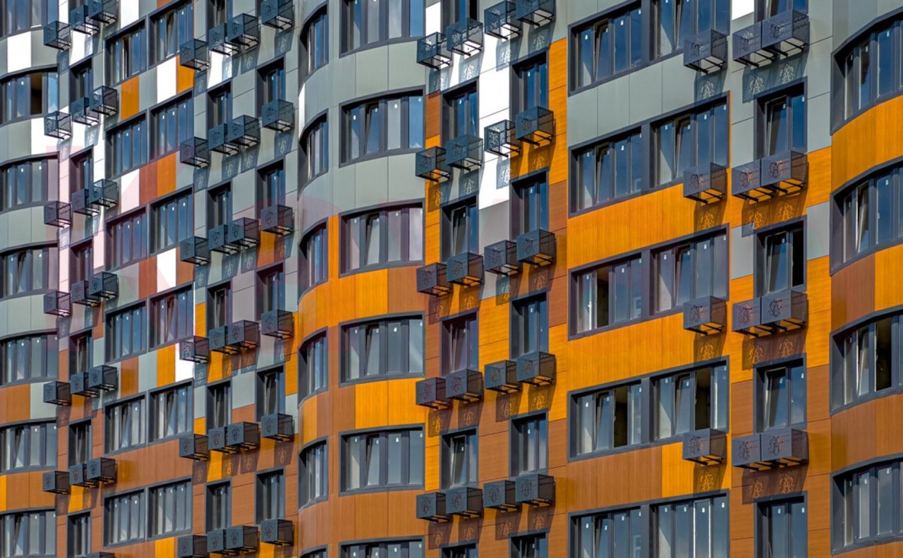 Жилой комплекс представляет собой 4 корпуса высотой в 16 этажей. Фасад выполнен из вентилируемых материалов.