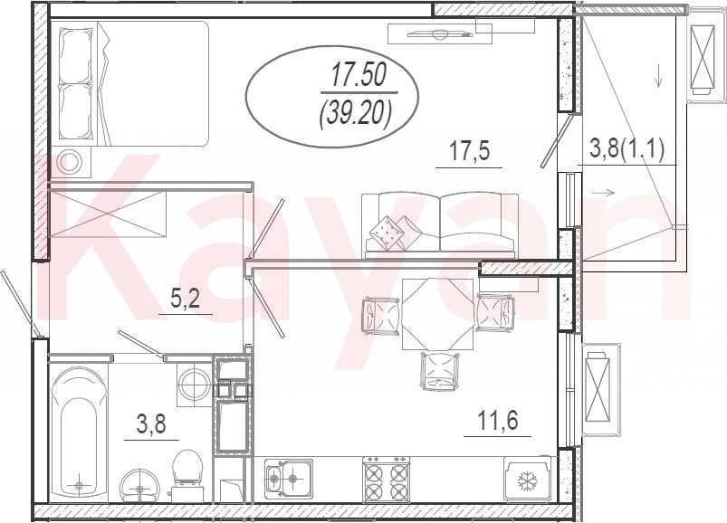 Продажа 1-комн. квартиры, 38.1 кв.м