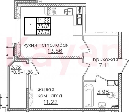 Продажа 1-комн. квартиры, 35.87 кв.м