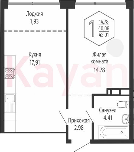 Продажа 1-комн. квартиры, 40.08 кв.м