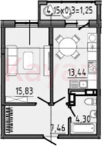 Продажа 1-комн. квартиры, 44.82 кв.м