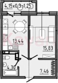 Продажа 1-комн. квартиры, 44.93 кв.м
