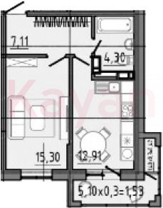 Продажа 1-комн. квартиры, 45.55 кв.м