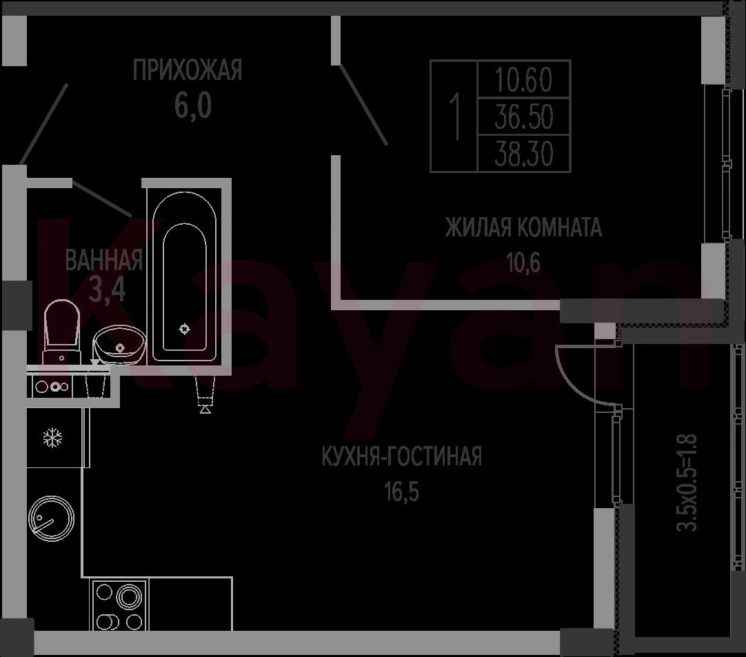 Квартира в ЖК «Екатерининский парк» (ЕкатеринодарИнвестСтрой) литер 4 очередь 1, Кирпично-монолитный, 1 к.кв., 36.5 кв.м., 1/7, высота потолков: 3.1 м, жилая площадь: 10.6 кв.м., возможна ипотека, возможна военная ипотека, площадь кухни 16.5 кв.м.,