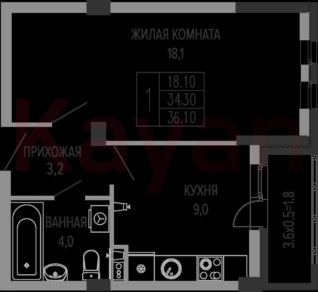 Продажа 1-комн. квартиры, 34.3 кв.м