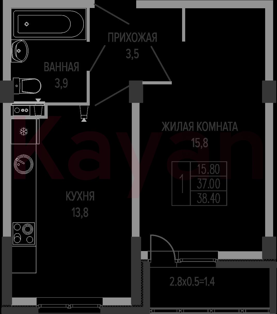Продажа 1-комн. квартиры, 37 кв.м