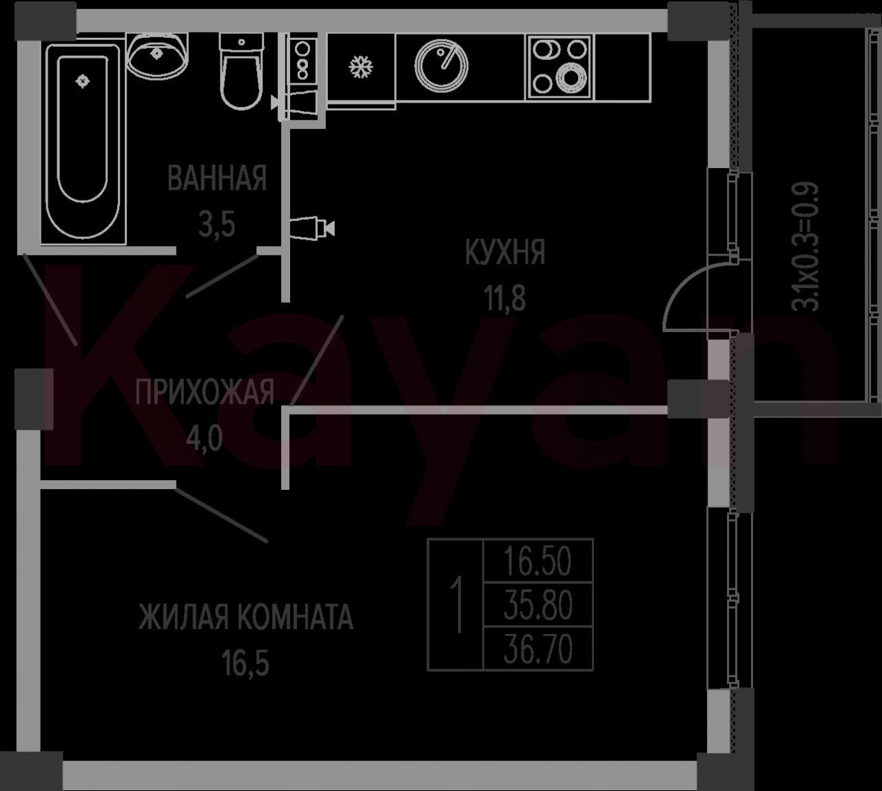 Продажа 1-комн. квартиры, 35.8 кв.м