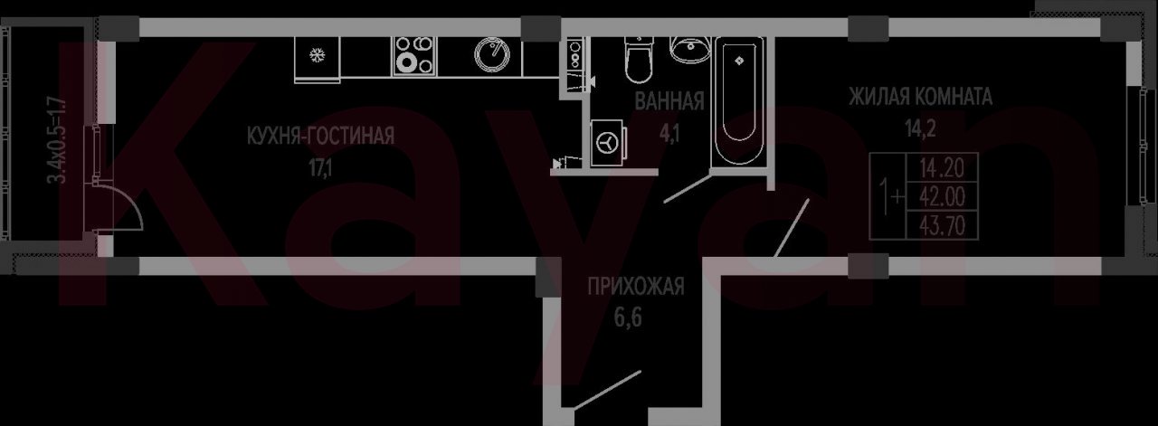 Продажа 1-комн. квартиры, 42 кв.м
