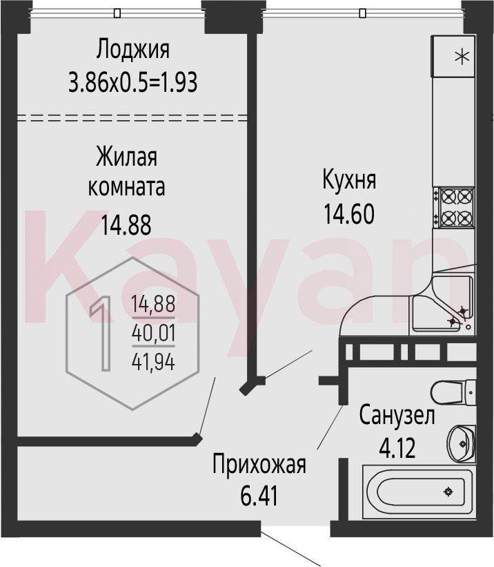 Продажа 1-комн. квартиры, 40.01 кв.м