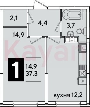 Продажа 1-комн. квартиры, 37.3 кв.м