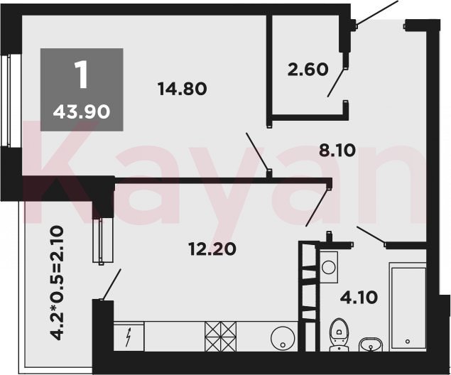Продажа 1-комн. квартиры, 41.8 кв.м