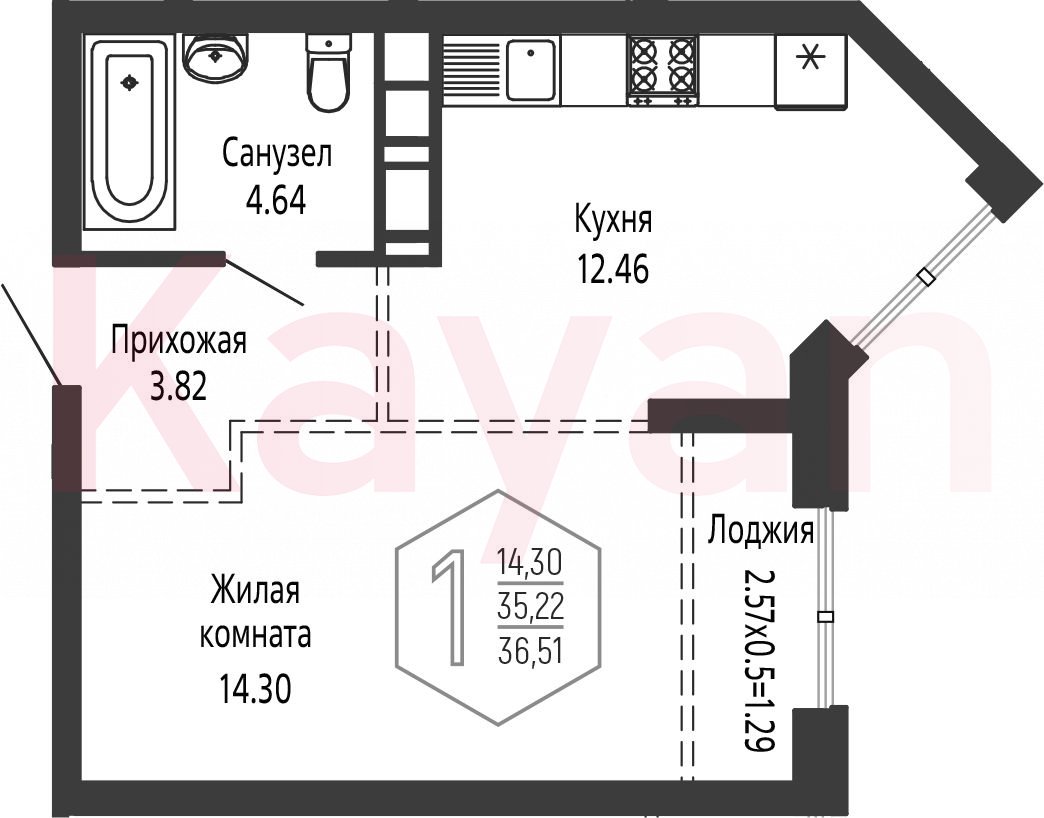 Продажа 1-комн. квартиры, 35.22 кв.м