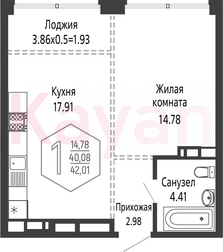Продажа 1-комн. квартиры, 40.08 кв.м
