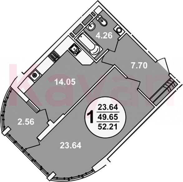 Продажа 1-комн. квартиры, 49.65 кв.м