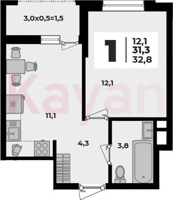 Продажа 1-комн. квартиры, 31.3 кв.м