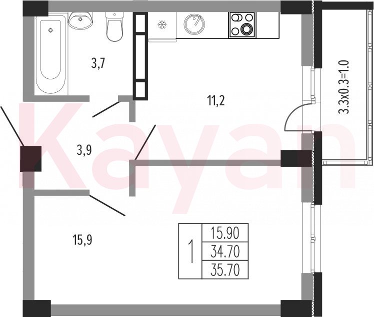 Продажа 1-комн. квартиры, 34.7 кв.м