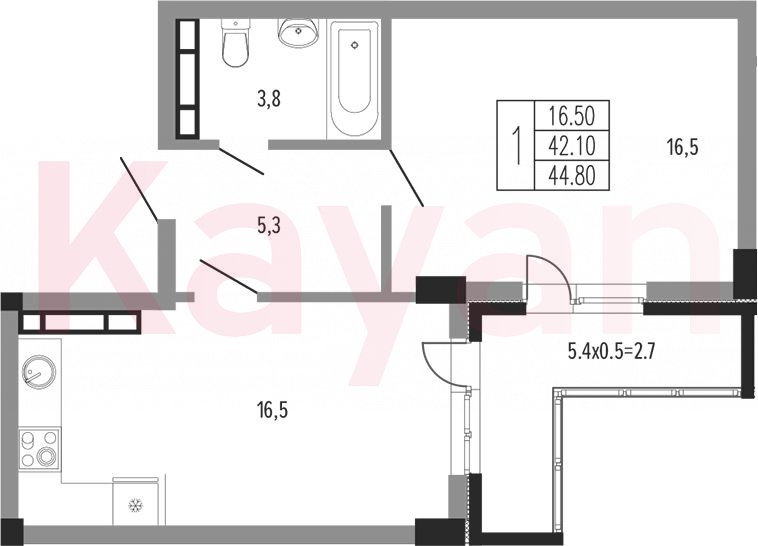 Продажа 1-комн. квартиры, 42.1 кв.м
