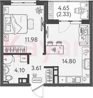 Продажа 1-комн. квартиры, 34.49 кв.м