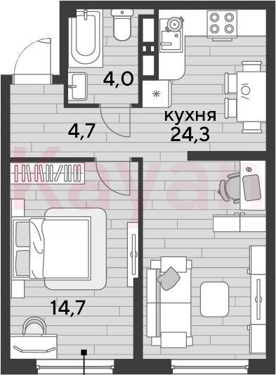 Продажа 1-комн. квартиры, 47.7 кв.м