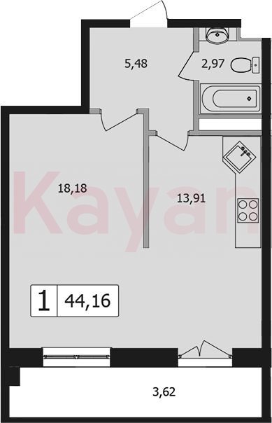 Продажа 1-комн. квартиры, 40.5 кв.м