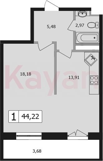 Продажа 1-комн. квартиры, 40.54 кв.м