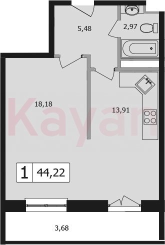 Продажа 1-комн. квартиры, 40.54 кв.м