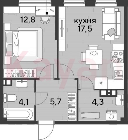 Продажа 1-комн. квартиры, 44.4 кв.м
