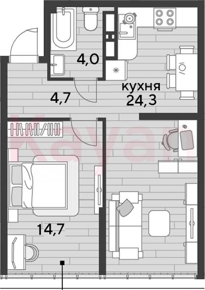 Квартира в ЖК «Dogma park (Догма парк)» (DOGMA. Краснодар) литер 1 очередь 1, Кирпично-монолитный, 1 к.кв., 47.7 кв.м., 16/16, высота потолков: 3.02 м, жилая площадь: 14.7 кв.м., возможна ипотека, возможна военная ипотека, площадь кухни 24.3 кв.м.,