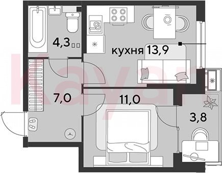 Покупателям в ЖК предложено множество планировочных решений: в наличии квартиры, как классического типа, так и европланировки. Сдаются они с мебелью, со стандартными окнами и высотой полоков 2,72 метра. В квартирах на последних этажах предусмотрено витражное остекление.
