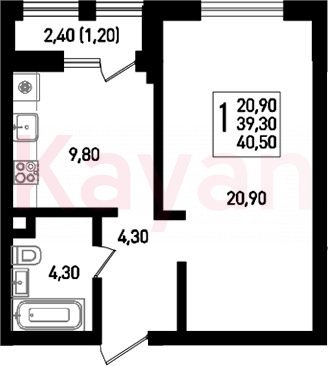Продажа 1-комн. квартиры, 39.3 кв.м