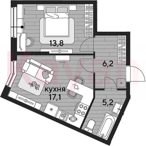 Продажа 1-комн. квартиры, 42.3 кв.м