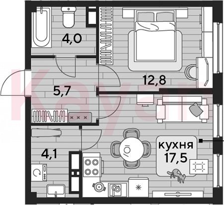 Продажа 1-комн. квартиры, 44.1 кв.м