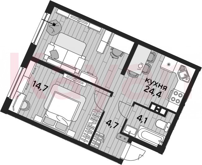 Квартира в ЖК «Dogma park (Догма парк)» (DOGMA. Краснодар) литер 13 очередь 2, Кирпично-монолитный, 1 к.кв., 47.9 кв.м., 8/19, высота потолков: 2.72 м, жилая площадь: 14.7 кв.м., возможна ипотека, возможна военная ипотека, площадь кухни 24.4 кв.м.,