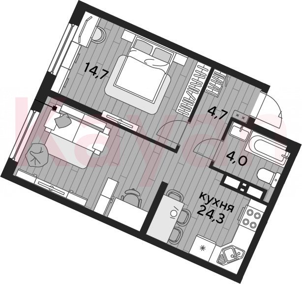 Продажа 1-комн. квартиры, 47.7 кв.м