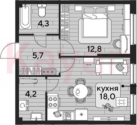Продажа 1-комн. квартиры, 45 кв.м