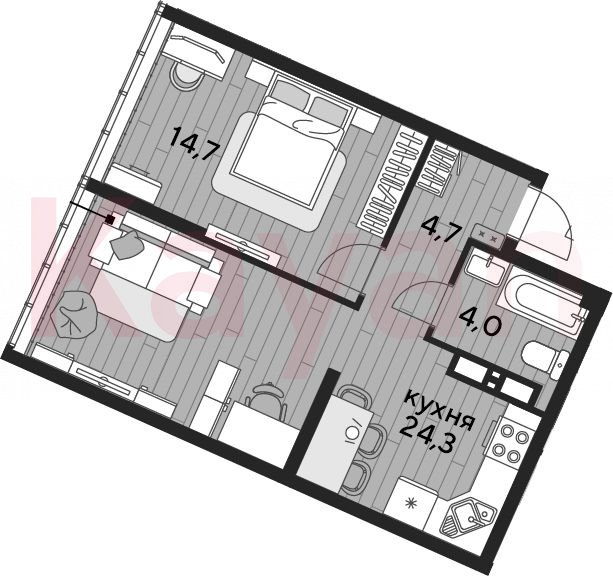 Продажа 1-комн. квартиры, 47.7 кв.м