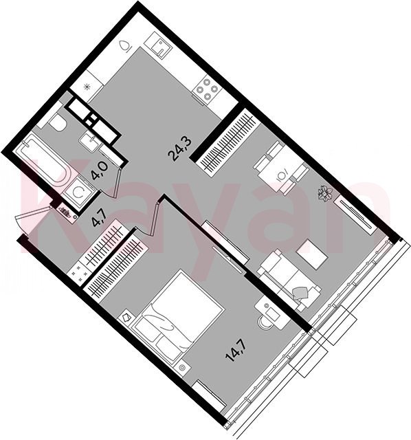 Квартира в ЖК «Dogma park (Догма парк)» (DOGMA. Краснодар) литер 13 очередь 2, Кирпично-монолитный, 1 к.кв., 47.7 кв.м., 19/19, высота потолков: 3.02 м, жилая площадь: 14.7 кв.м., возможна ипотека, возможна военная ипотека, площадь кухни 24.3 кв.м.,