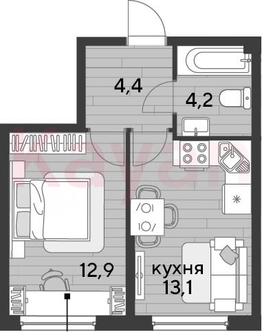 Продажа 1-комн. квартиры, 34.6 кв.м