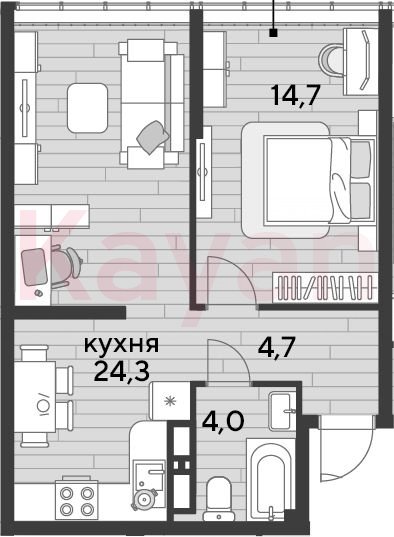 Продажа 1-комн. квартиры, 47.7 кв.м