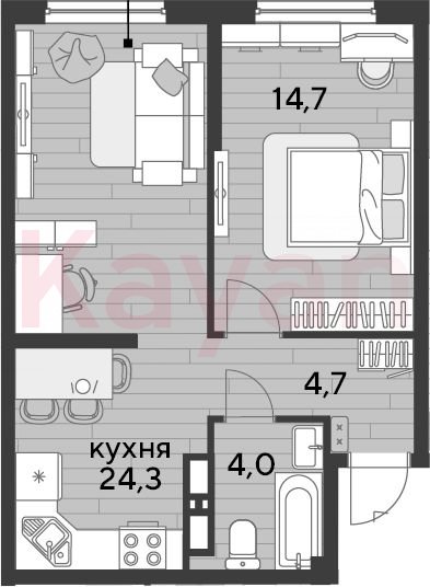 Продажа 1-комн. квартиры, 47.7 кв.м