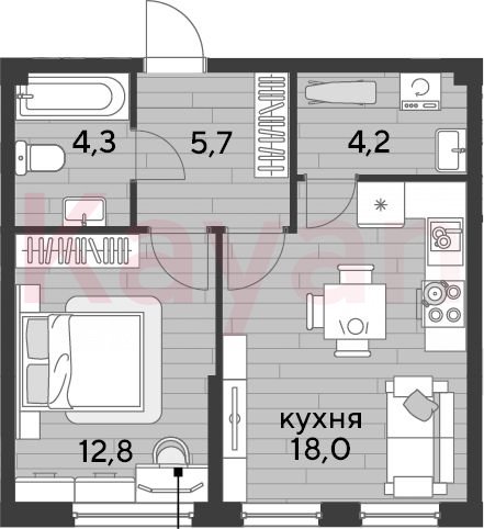 Квартира в ЖК «Dogma park (Догма парк)» (DOGMA. Краснодар) литер 14 очередь 2, Кирпично-монолитный, 1 к.кв., 45 кв.м., 2/19, высота потолков: 2.72 м, жилая площадь: 12.8 кв.м., возможна ипотека, возможна военная ипотека, площадь кухни 18 кв.м.,