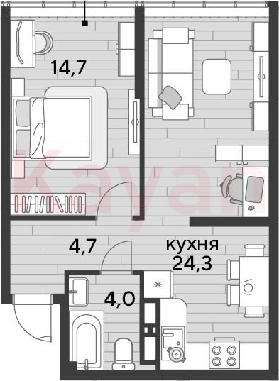Квартира в ЖК «Dogma park (Догма парк)» (DOGMA. Краснодар) литер 14 очередь 2, Кирпично-монолитный, 1 к.кв., 47.7 кв.м., 18/19, высота потолков: 3.02 м, жилая площадь: 14.7 кв.м., возможна ипотека, возможна военная ипотека, площадь кухни 24.3 кв.м.,