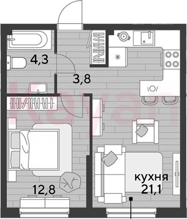 Квартира в ЖК «Dogma park (Догма парк)» (DOGMA. Краснодар) литер 15 очередь 2, Кирпично-монолитный, 1 к.кв., 42 кв.м., 2/16, высота потолков: 2.72 м, жилая площадь: 12.8 кв.м., возможна ипотека, возможна военная ипотека, площадь кухни 21.1 кв.м.,