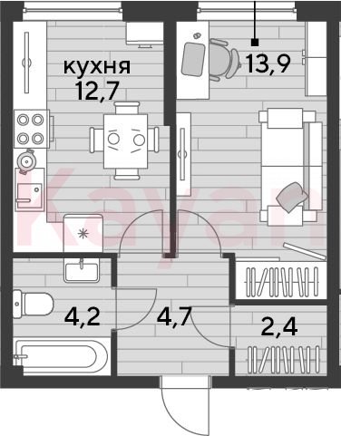 Квартира в ЖК «Dogma park (Догма парк)» (DOGMA. Краснодар) литер 16 очередь 2, Кирпично-монолитный, 1 к.кв., 37.9 кв.м., 2/16, высота потолков: 2.72 м, жилая площадь: 13.9 кв.м., возможна ипотека, возможна военная ипотека, площадь кухни 12.7 кв.м.,