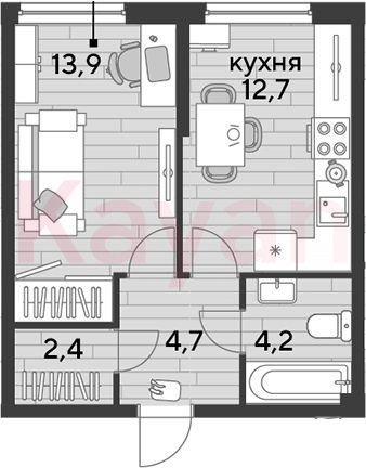 Квартира в ЖК «Dogma park (Догма парк)» (DOGMA. Краснодар) литер 16 очередь 2, Кирпично-монолитный, 1 к.кв., 37.9 кв.м., 2/16, высота потолков: 2.72 м, жилая площадь: 13.9 кв.м., возможна ипотека, возможна военная ипотека, площадь кухни 12.7 кв.м.,