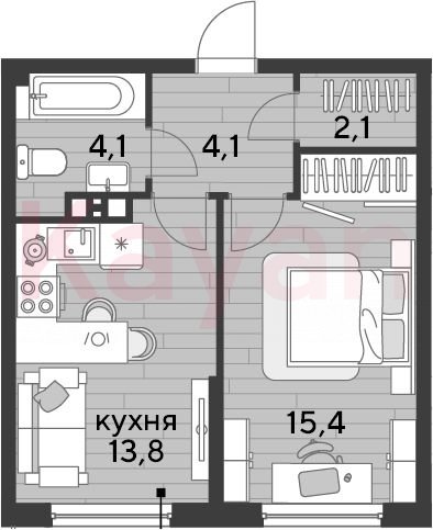 Квартира в ЖК «Dogma park (Догма парк)» (DOGMA. Краснодар) литер 16 очередь 2, Кирпично-монолитный, 1 к.кв., 39.5 кв.м., 5/16, высота потолков: 2.72 м, жилая площадь: 15.4 кв.м., возможна ипотека, возможна военная ипотека, площадь кухни 13.8 кв.м.,