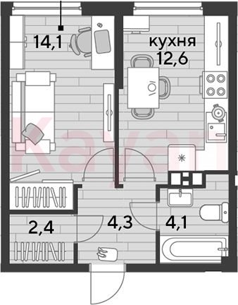 Квартира в ЖК «Dogma park (Догма парк)» (DOGMA. Краснодар) литер 16 очередь 2, Кирпично-монолитный, 1 к.кв., 37.5 кв.м., 5/16, высота потолков: 2.72 м, жилая площадь: 14.1 кв.м., возможна ипотека, возможна военная ипотека, площадь кухни 12.6 кв.м.,